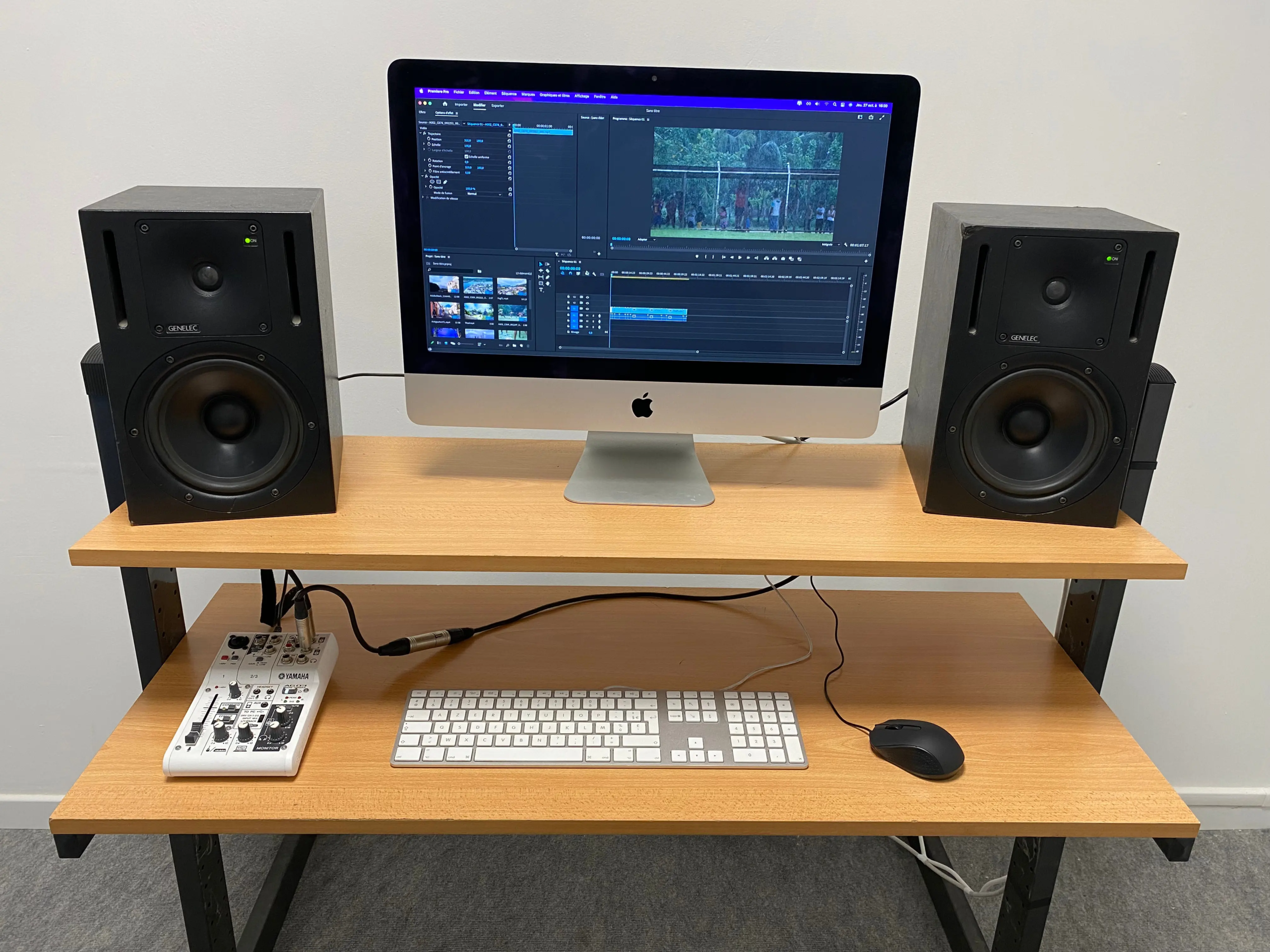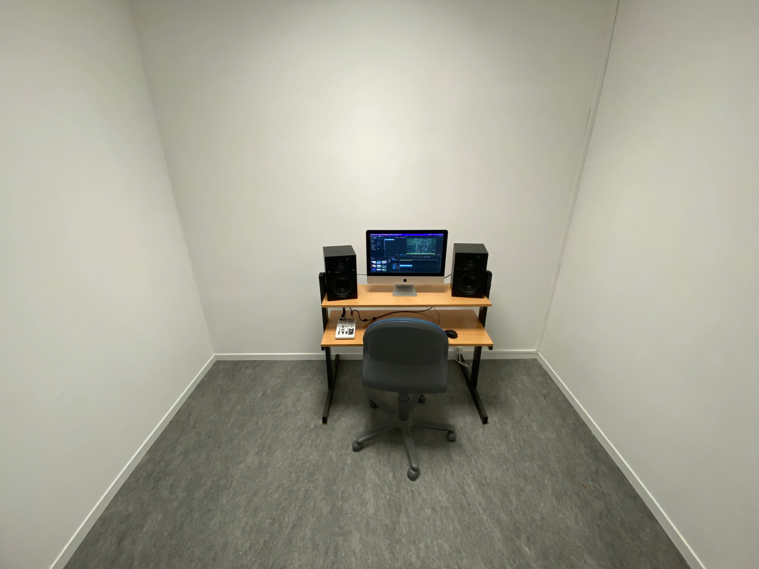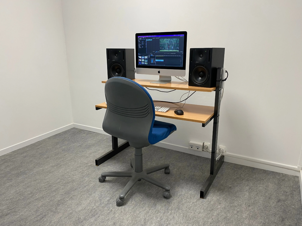 Le studio de montage vidéo est optimisé pour le travail de postproduction. Il est aménagé de manière ergonomique afin de garantir confort et efficacité lors des sessions prolongées. Le studio dispose d’un équipement audio et informatique adapté ainsi que d’une connexion Internet pour le transfert de fichiers et le travail collaboratif.
